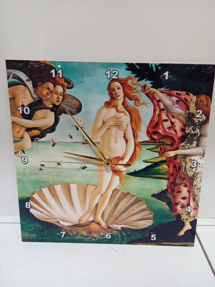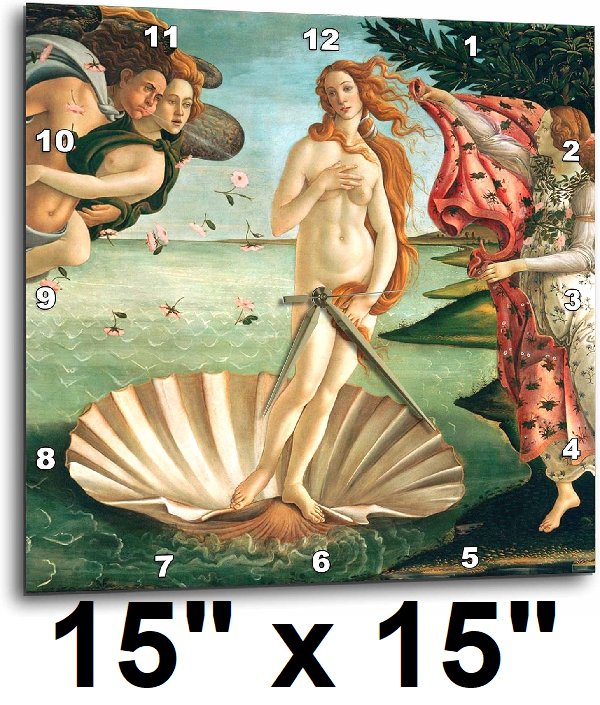 3drose Botichelli The Birth of Venus 1485 Famous Classic Art by Italian Masters Ocean Sea Shell Masterpiece Wall Clock - 15" x 15" - multicolour