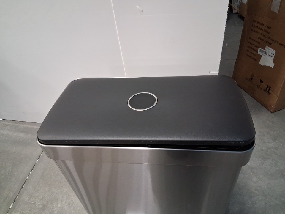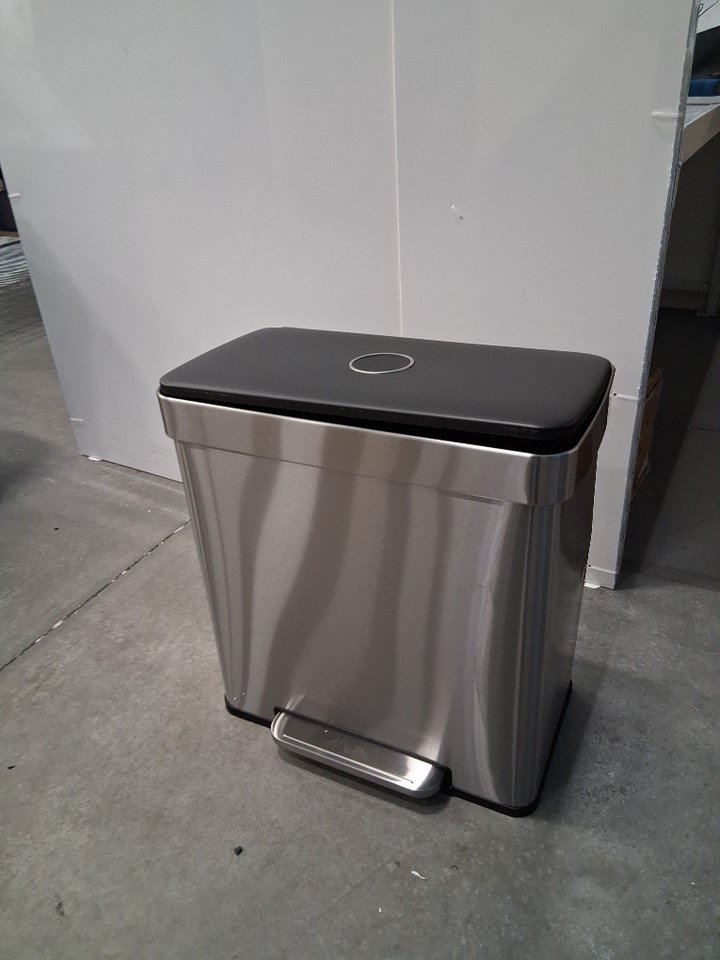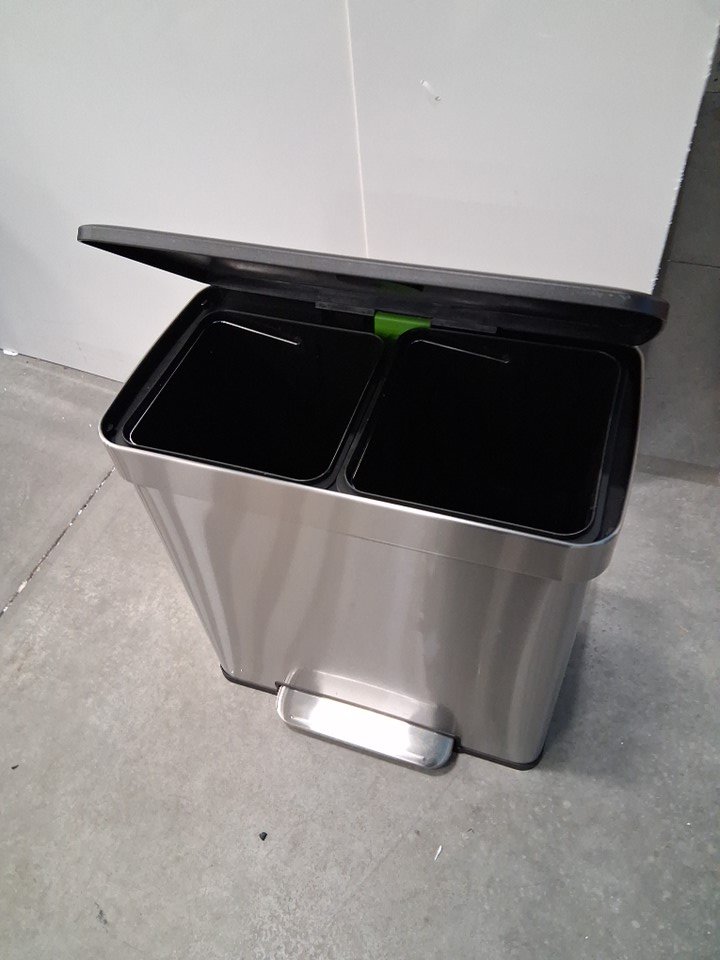 Amazon Basics Rectangular Dual Compartment Recycling Garbage Trash Can with soft close lid - 60l - silver/black