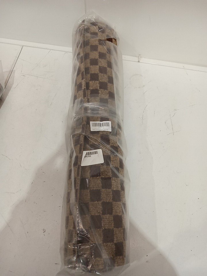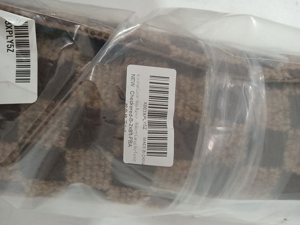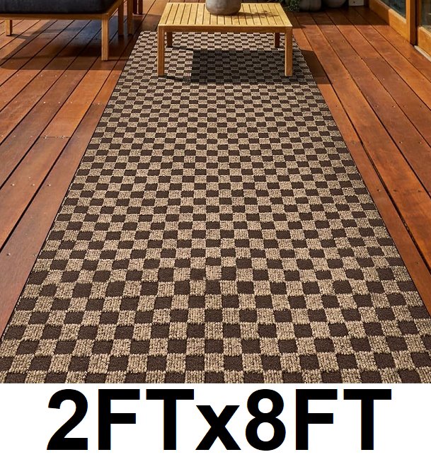 gotohipi non-slip indoor/outdoor washable low-pile runner rug carpet - 2ft x 8ft - brown checkered