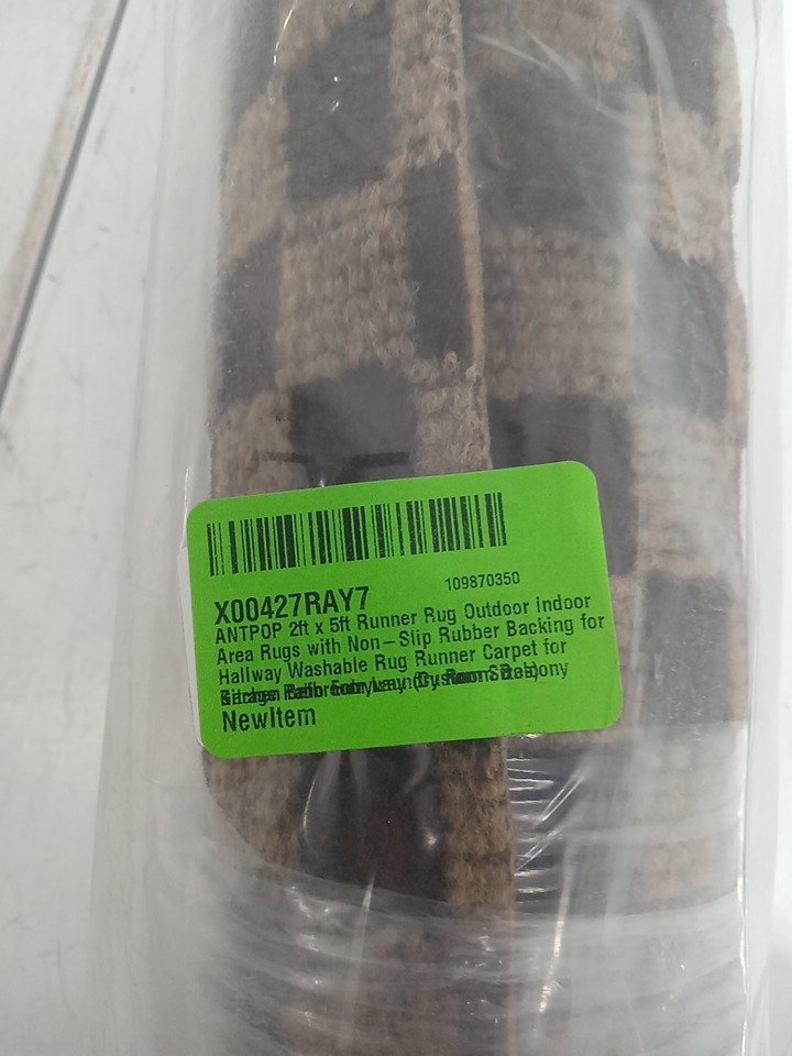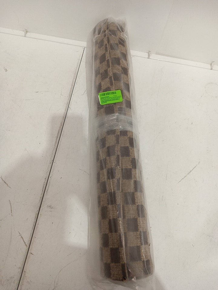 antpop non-slip indoor/outdoor washable low-pile runner rug carpet - 2ft x 5ft - brown checkered