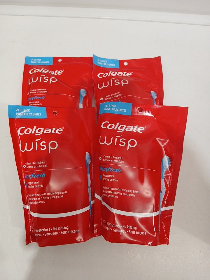 4 (24PKS) COLGATE MAXFRESH WISP DISPOSABLE TRAVEL TOOTHBRUSHES - PEPPERMINT (72 TOTAL)