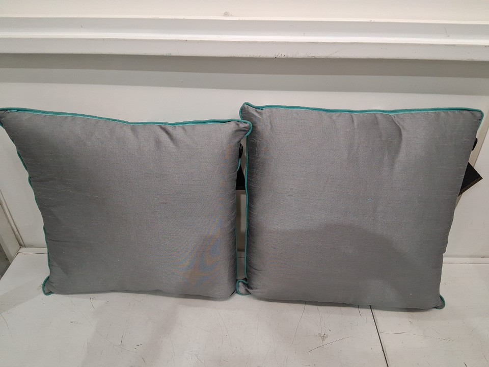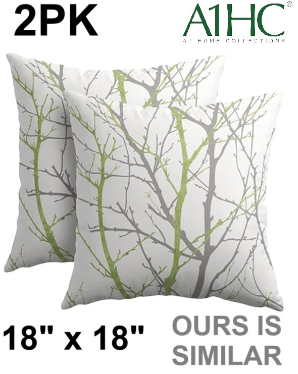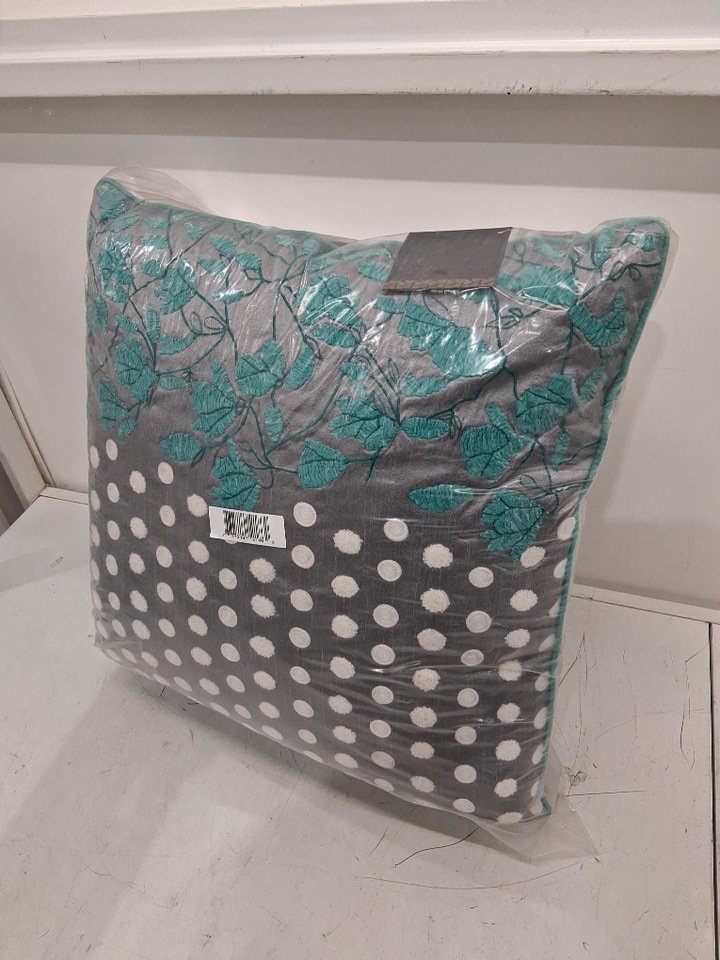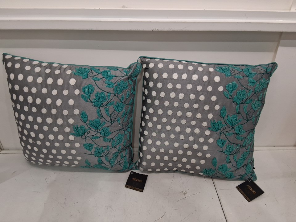 2PK A1 HOME COLLECTIONS 100% Cotton Hand-Crafted Embroidered Throw Pillows - 18" x 18" - Grey Dots and Green Leaves