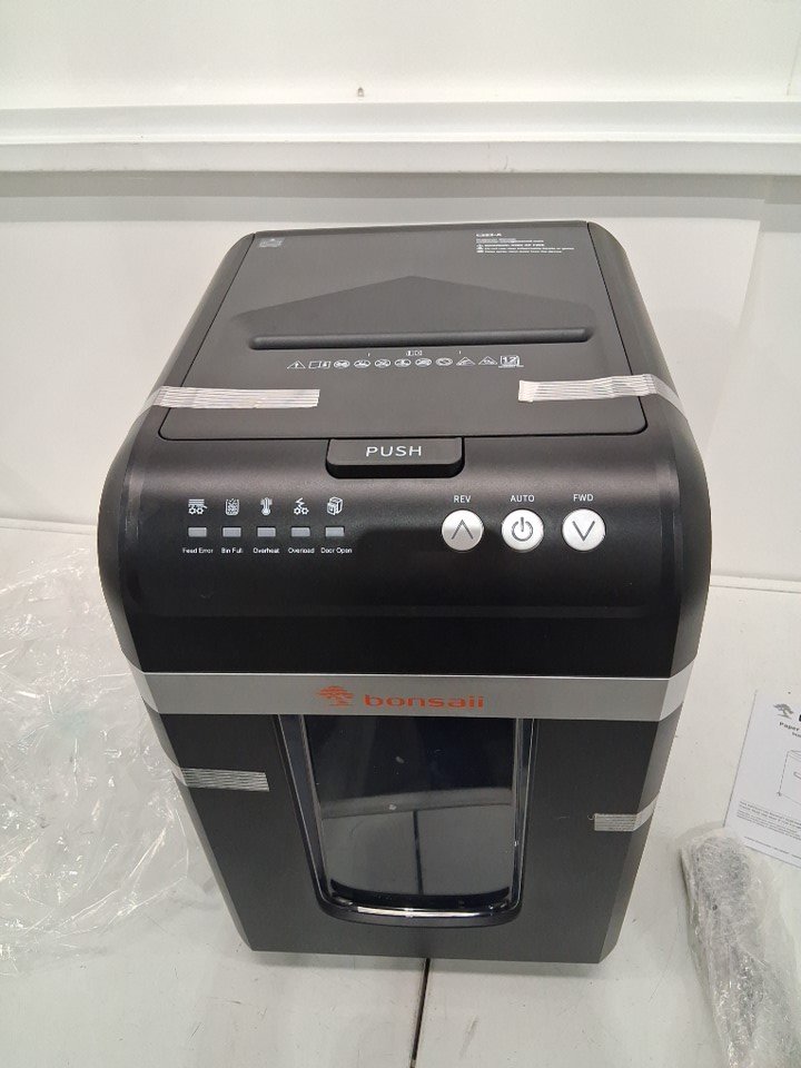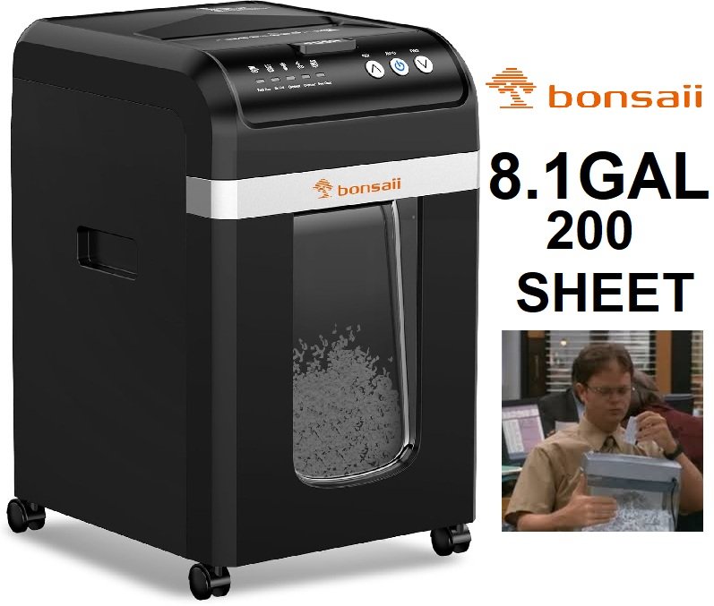bonsaii 200-sheet auto feed heavy duty paper shredder - 8.1gal - 60 minute run time - black (model: C283-A)