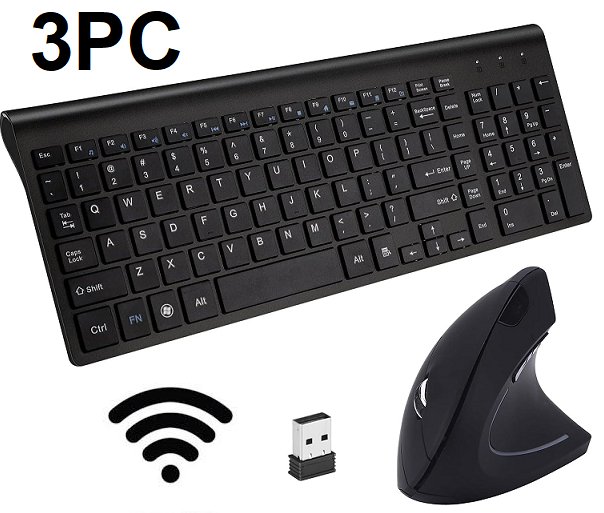 3PC Fonicer Wireless Vertical Ergonomic Mouse and Keyboard - 2.4GHz - Blackone