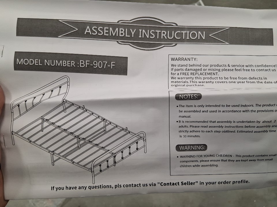 Vintage metal Bed Frame - Full size - White (Model: BF-907-F)