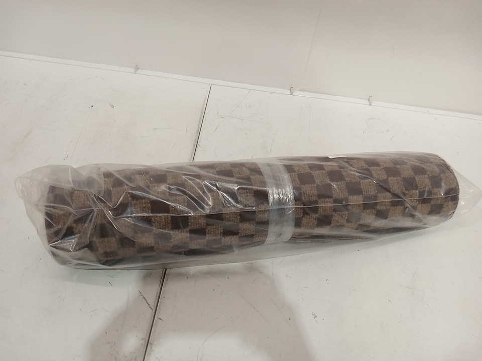 gotohipi non-slip indoor/outdoor washable low-pile runner rug carpet - 2ft x 9ft - brown checkered