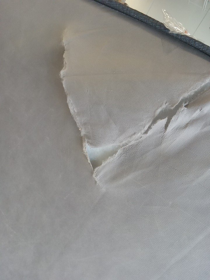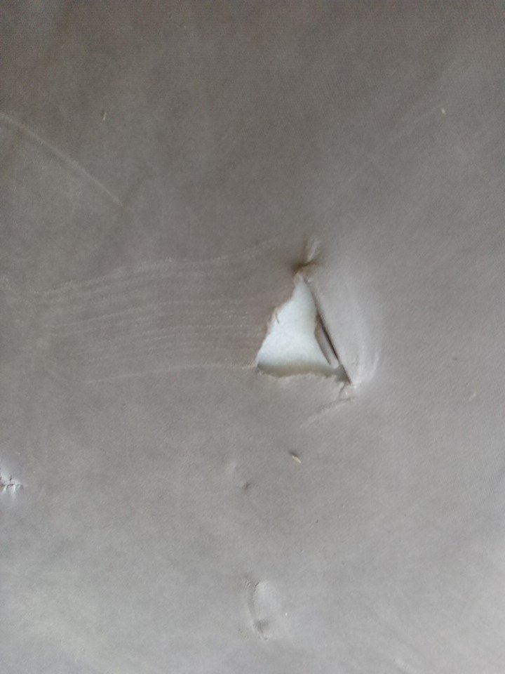 Item appears dirty and has multiple cuts present under side the mattress due to loose shipping/storage.