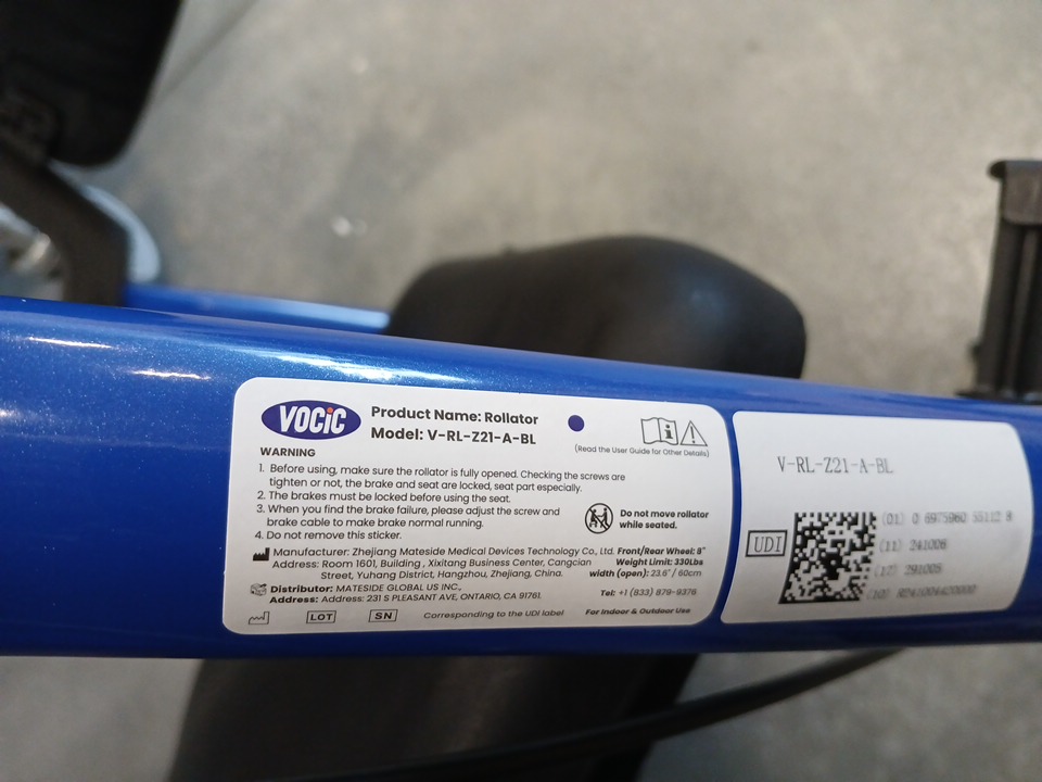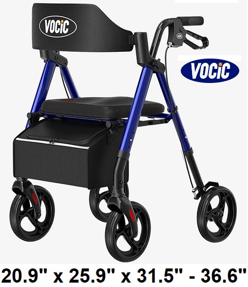 VOCIC Ergonomic Foldable 4-Wheel Rollator Walker - 20.9" x 25.9" x 31.5" - 36.6" - Blue (model: v-rl-z21-a-bl)