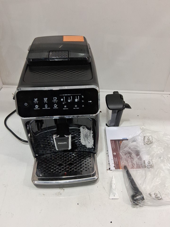 This item will not be eligible for our warranty unless the machine was descaled & cleaned using the manufacturer's instructions. If you require additional time for our warranty in order to clean these machines, please reach out to us before your specified warranty deadline. **Due to the high sensitivity and frequent upkeep of operation on these units, additional cleaning may be required. If not descaled with model specific cleaning product, the units may become clogged and will cause potential operational issues. Please refer to the manufacturer's operations manual for detailed cleaning instructions.** **Tested for power.** Item has coffee grounds debris/stains throughout machine, residue markings as well as scuffs/scratches along the exterior from previous use, see photos. Item does not include a brew group, aquaclean filter, or water hardness test strip, and the drip tray full indicator is slightly warped, see photos. Replacement brew groups are available for purchase online (here: https://espressocanada.com/products/saeco-philips-brew-unit-replacement-part-no-421944093341?srsltid=AfmBOopW91IjZi4dC1vk6hLAYmR8VbHNakCv85ZtugsLY9NmJ6X0ZY22). *GENERIC CONDITION STATEMENT* This item has been handled/inspected, tested if needed by our listing staff to the best of their ability/knowledge and for an unknown reason arrived to our facility with an issue. This issue can either be a very minor/major cosmetic issue which most likely occurred during shipping such as a dent, indent, scuff, stain, scratch or nick. If not a cosmetic issue, it can be a function issue with the item itself or there could be certain parts missing to make the item complete from how it is sold originally. (See lister notes and photos attached of the issue stated as well as packaging condition).