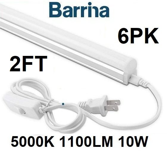 6PK BARRINA LED T5 INTEGRATED LINKABLE SINGLE LIGHT FIXTURES with built in on/off switch - 2FT EACH - 5000K - 1100LM - 10W - white(MODEL: AAF10)
