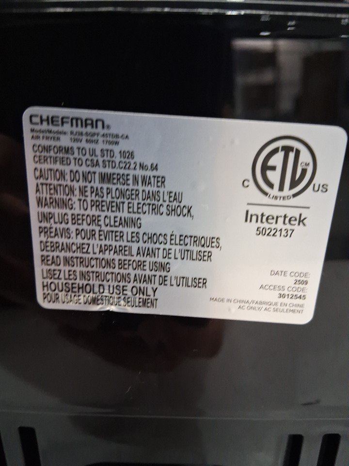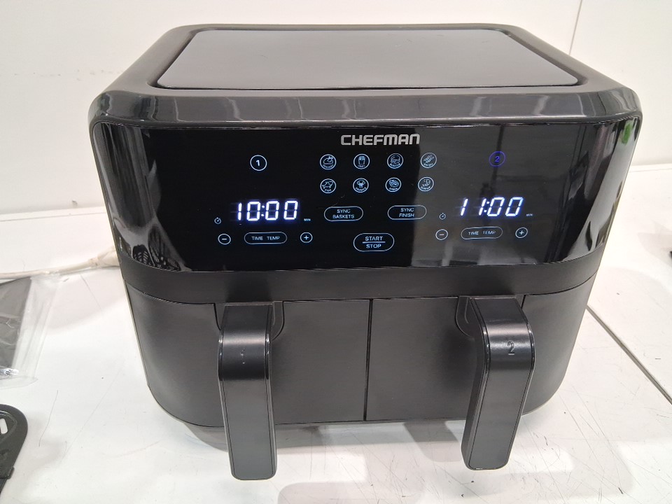 CHEFMAN TURBOFRY TOUCH SCREEN DUAL BASKET AIR FRYER - 9QT TOTAL CAPACITY - BLACK (MODEL: RJ38-SQPF-45TDB-ca)