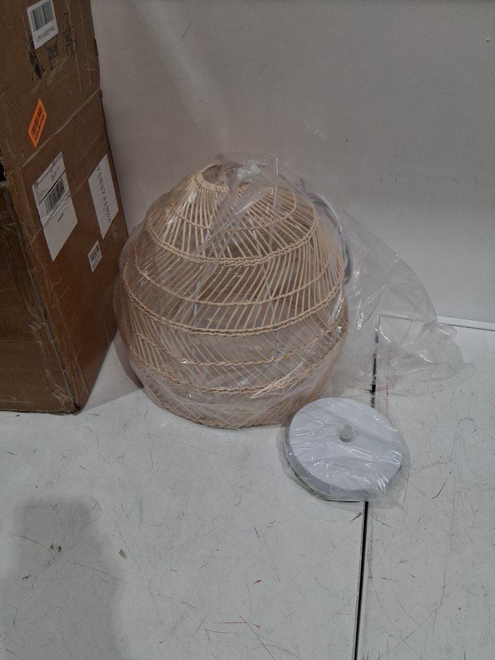WALMHOMIE RATTAN WOVEN PENDANT LIGHT, HAND WOVEN HANGING CHANDELIER LIGHTING FIXTURE - BAMBOO CEILING LAMP- 15.5" DIAMETER - NATURAL COLOUR
