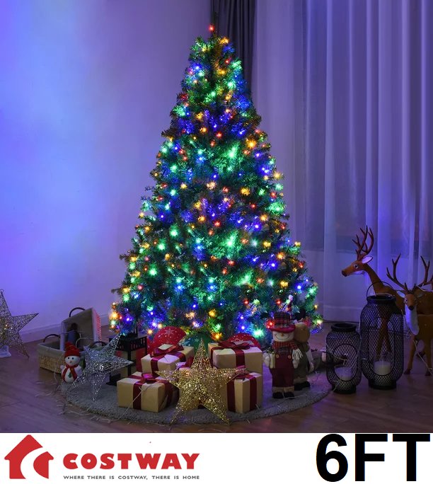 COSTWAY PREMIUM PRE-LIT ARTIFICIAL CHRISTMAS WITH TREE WITH 350 LED LIGHTS AND STAND - 6FT - GREEN/MULTICOLOUR - (MODEL: CM20679)