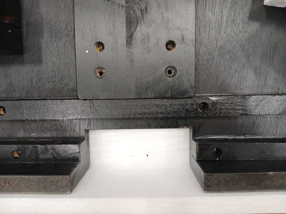 This listing is only for the table top (legs not included). Because this item is missing its legs, it has gaps in the table top where the legs are meant to go (see final image). This item has scratches under its table top and the top has scratches and nicks (see images)