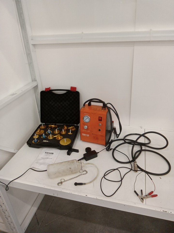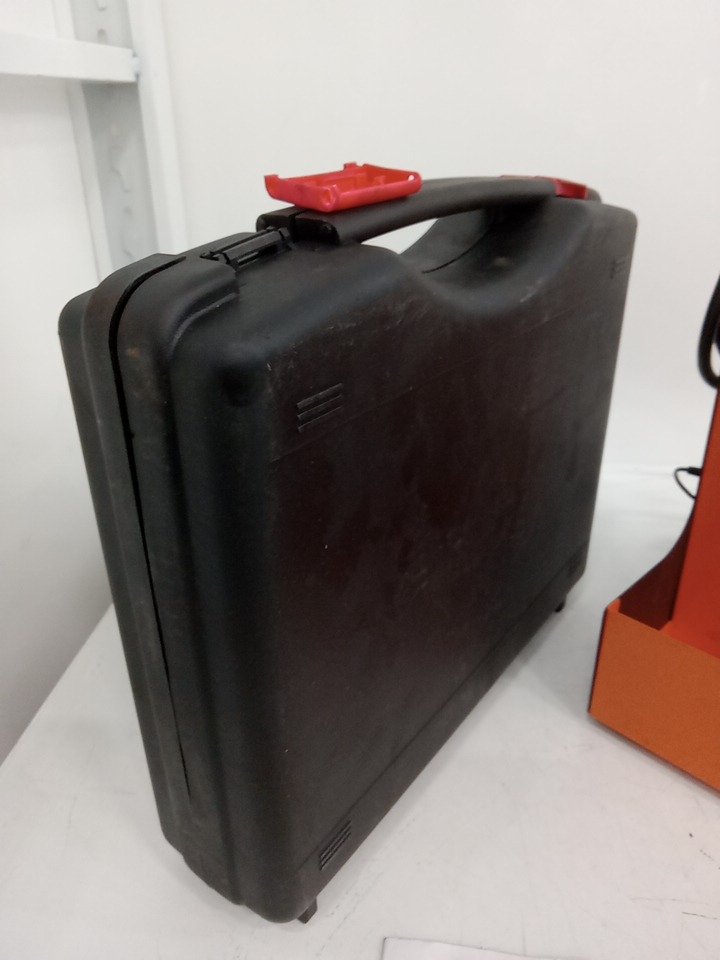Broken clasp on attachment carrying case and connected rubber tube. Grime indicates previous use (see photos).