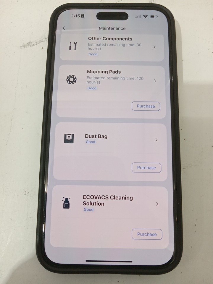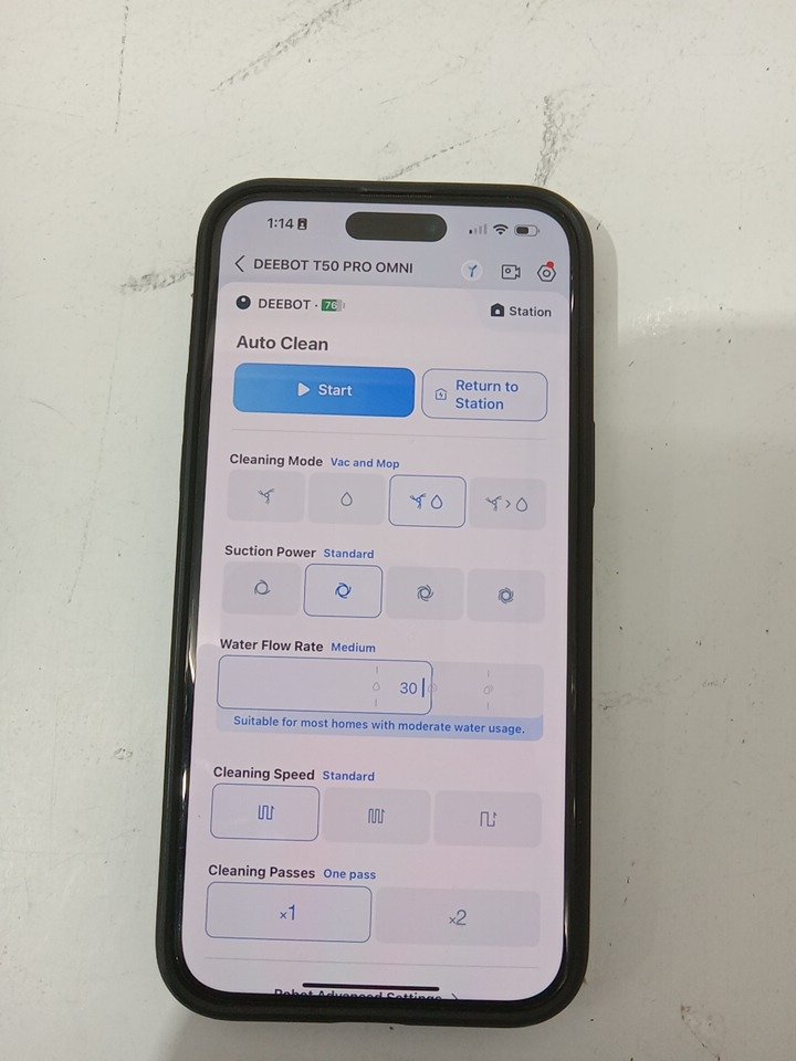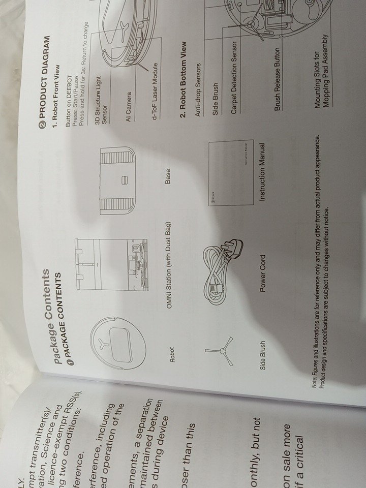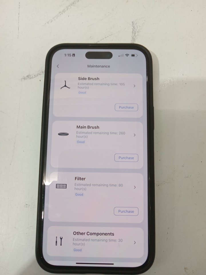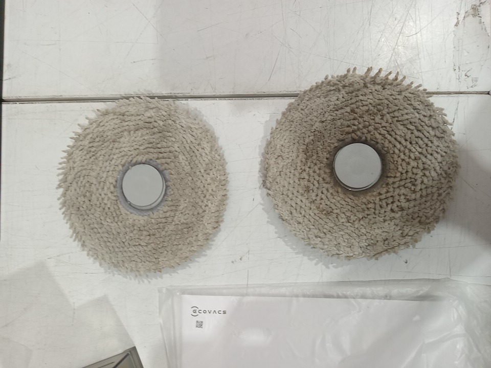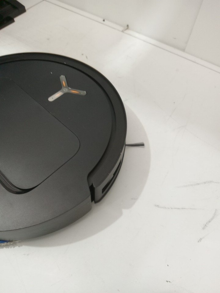**Tested for power, app connectivity, basic functions (mapping, return home).** There are dust/dirt and hair residue on the mop pad and side brush and scratch marks on the top of the robot vacuum from previous use. (Please see photos)