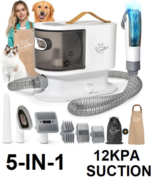 EXCEGBOT 5-IN-1 PET GROOMING VACUUM - 12KPA SUCTION - WHITE (MODEL: G20)