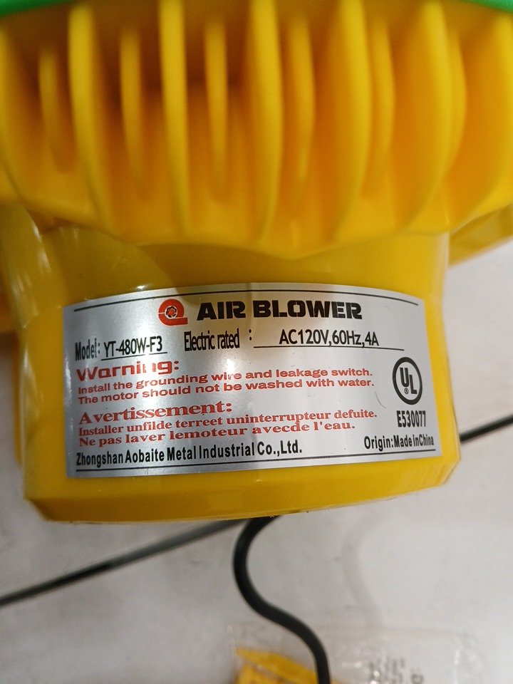 Bounce House Air Blower - 480W - yellow/green (MODEL: yt-480w-f3)