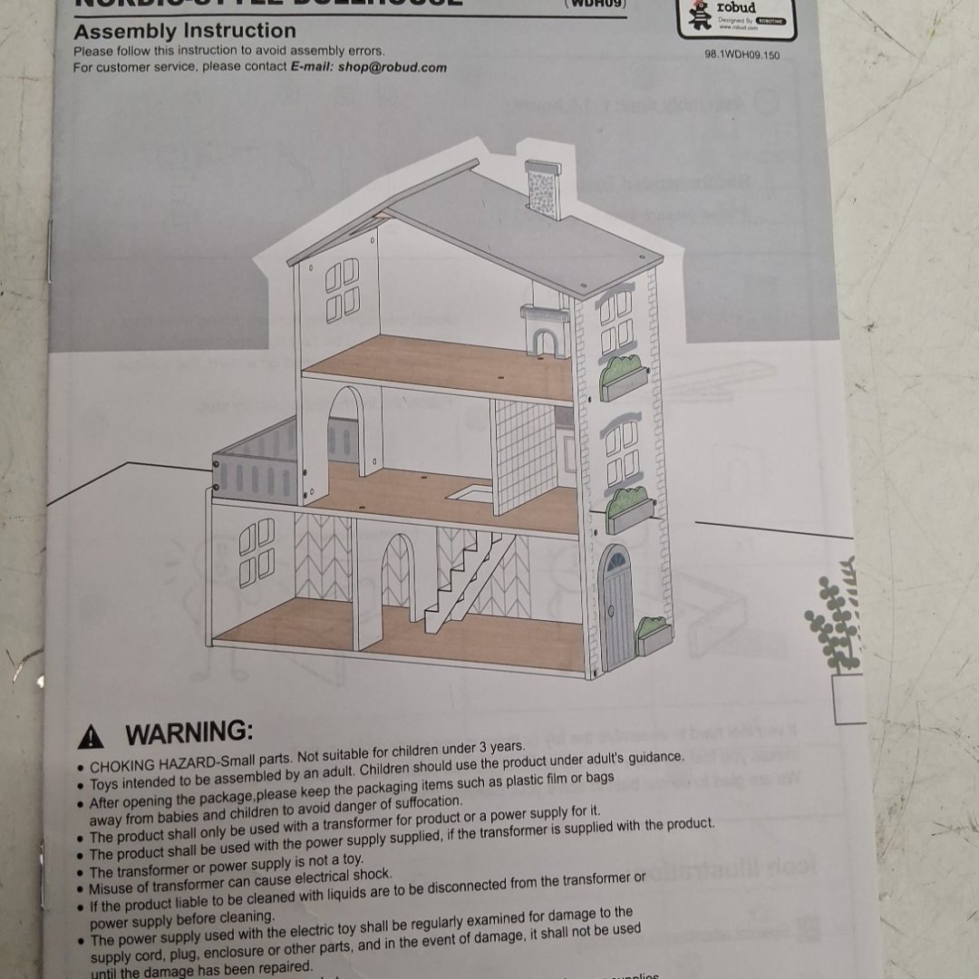 ROBUD nordic style Wooden Dollhouse - 10.6" x 24.5" x 26" - white (model: WDH09)