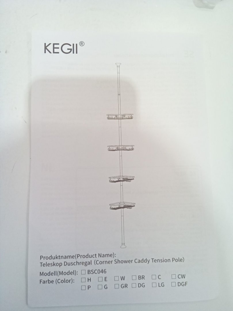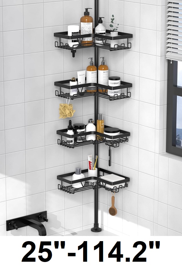 KEGII 4-Tier Shower Caddy with Hooks - 25" to 114.2" - Black (Model: BSC046)