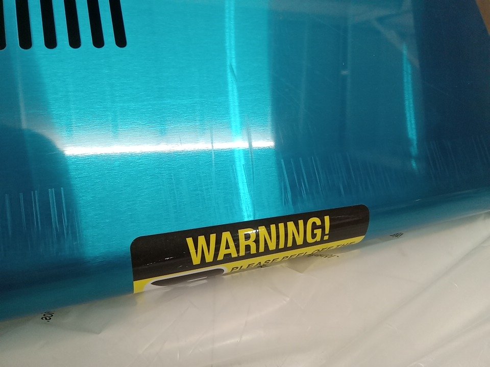 Small dent on the right corner rim. There are some scratches on the top flat edge, unsure if it is in the blue plastic coating or if it is underneath. Tested for power only.