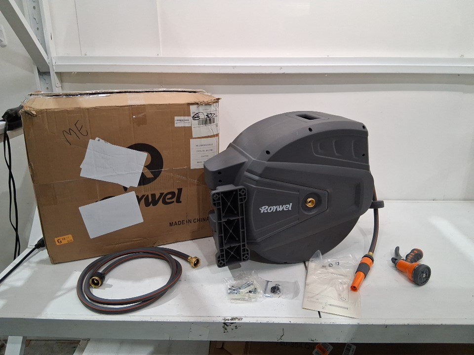 Roywel Wall-Mount Retractable Self-Rewind Slow Retraction 180° Pivot Bracket - 1/2" x 100FT (Model: RY-HR35100)