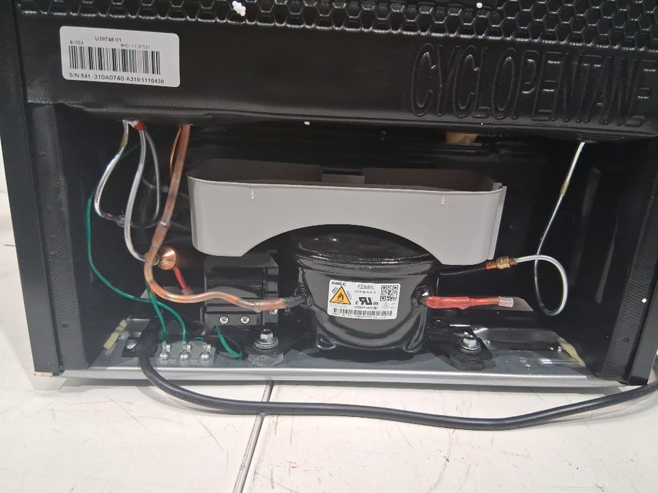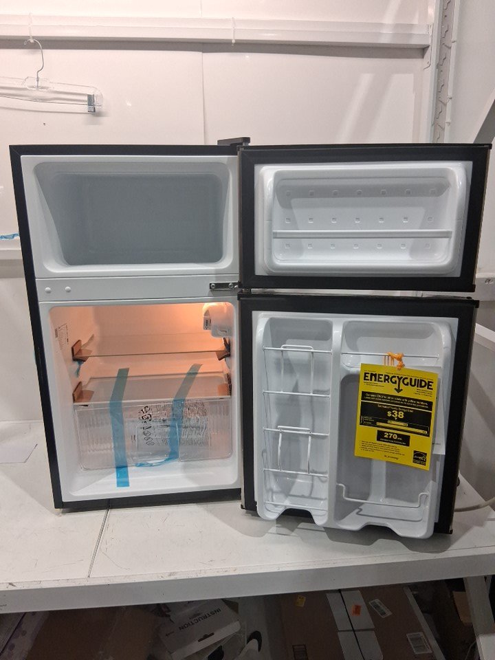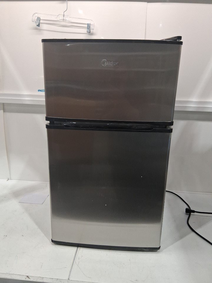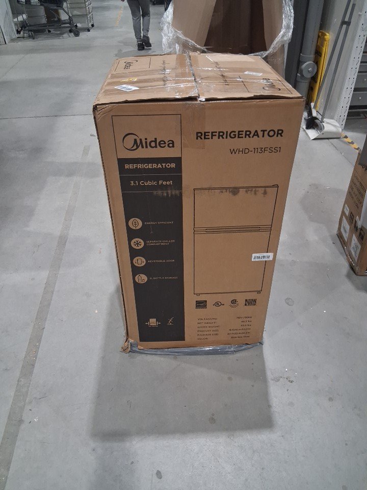 Midea Compact Top Mount Freezer Refrigerator with Reversible Door with Crisper Drawer with LED Lighting with Mechanical Controls - 3.1CU.FT - BLACK/SILVER (MODEL:WHD-113FSS1)