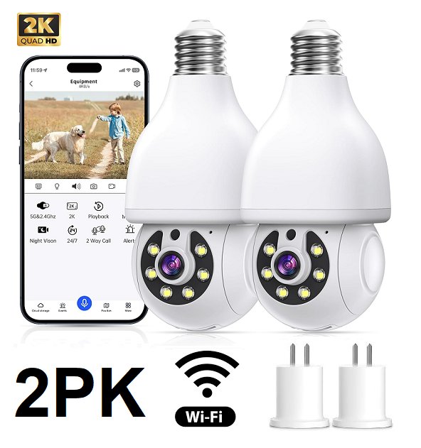 2PK a6 Light Bulb Security Camera WITH PLUG OUTLET ADD-ON - 3.0mp - 2k hd - white (Model: t-cp8050lf-w3m)