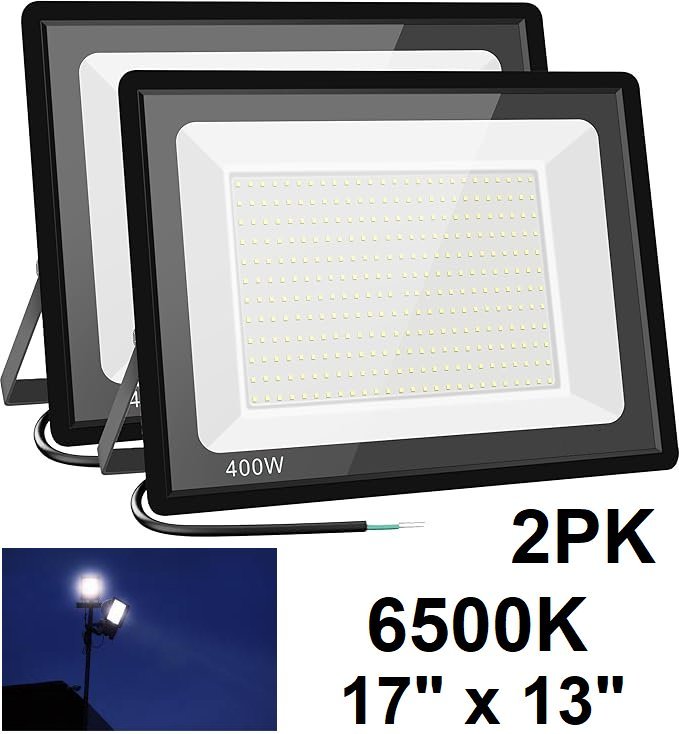 2pk outdoor 1p65 security flood lights - 400w 6500k - 13"x17" - black