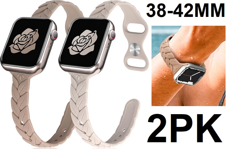 2pk JR.DM slim decorative engraved waterproof silicone watch bands compatible with apple watch - 38mm to 42mm - starlight brown/milky tea