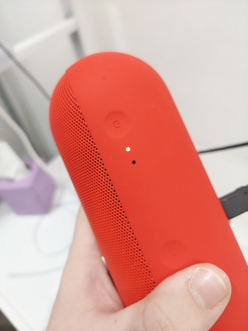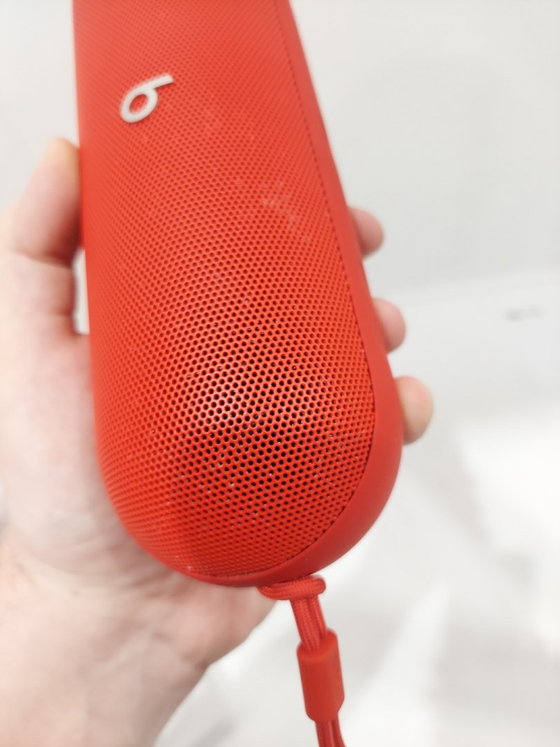 Item arrived with clear signs of light use. there is minor dust and debris in the metal mesh of the speaker but nothing that should effect use. tested for power and sound with bluetooth.