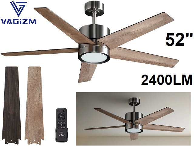Vagizm Ceiling Fan with led Light with remote - 52" - 2400LM - silver/brown/beige (model: cfl-001w5-s)