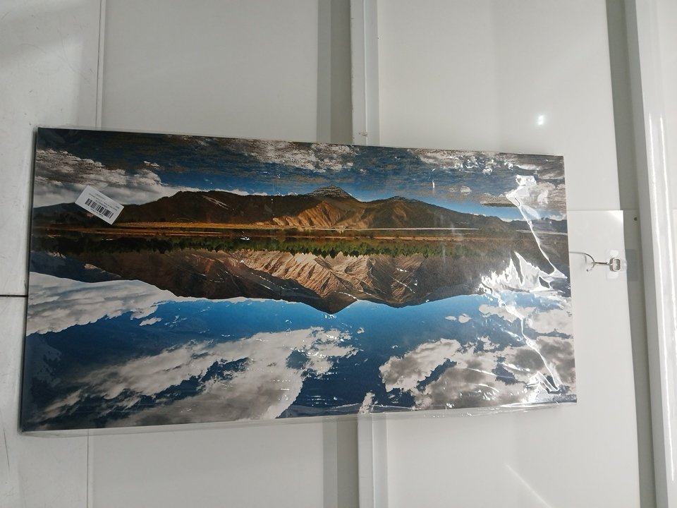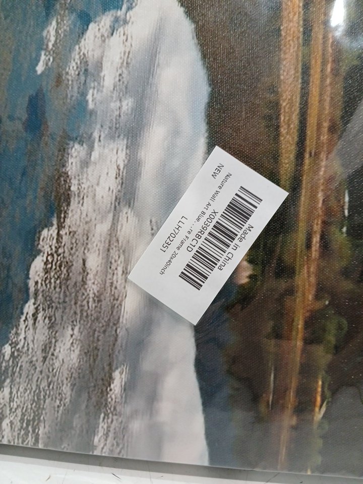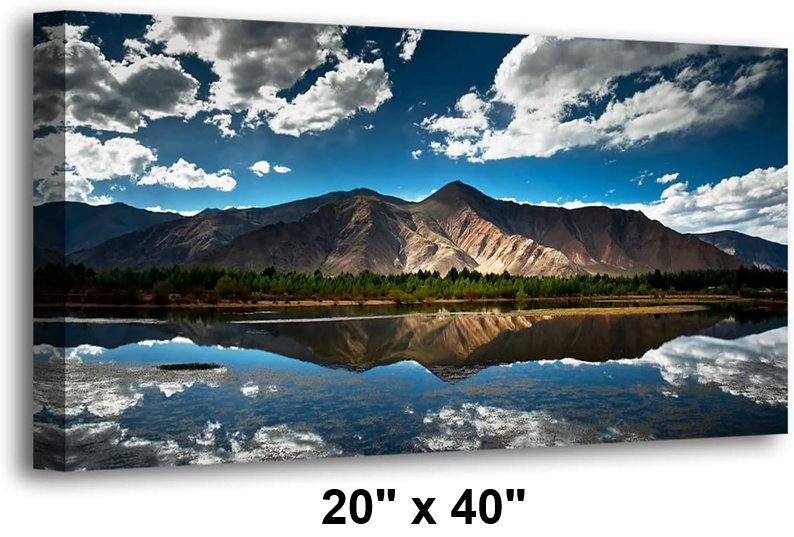 Nature Wall Art Canvas Print with Blue Lake Mountain Landscape - 40" x 20" - blue/green