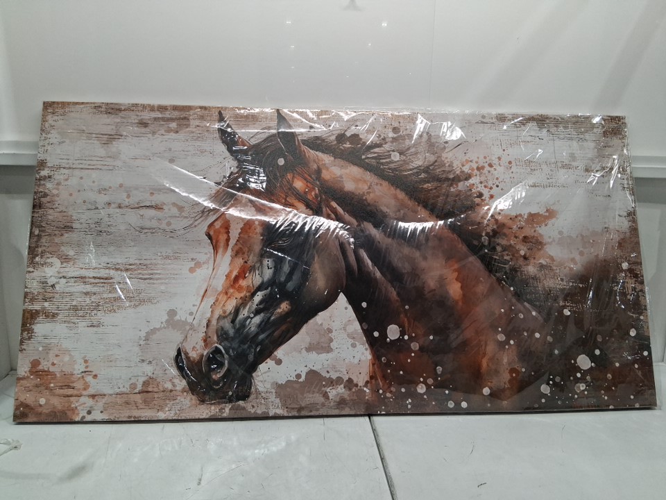 Wood Plank Effect Canvas Horse Painting - 58" x 29" - brown/white