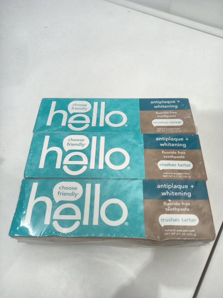 3PK hello antiplaque and whitening fluoride free toothpaste - 133g/each - NATURAL PEPPERMINT