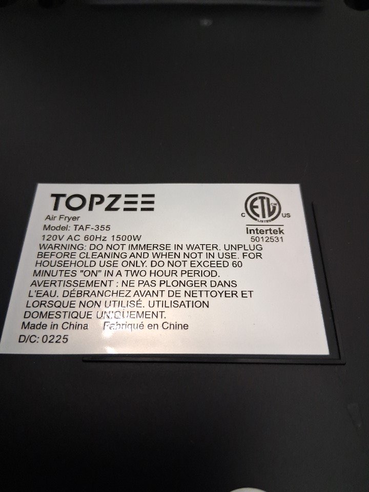 TOPZEE 12-in-1 Air Fryer - 5.5QT - BLACK (MODEL: taf-355)