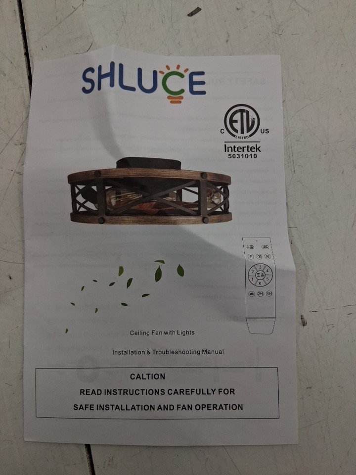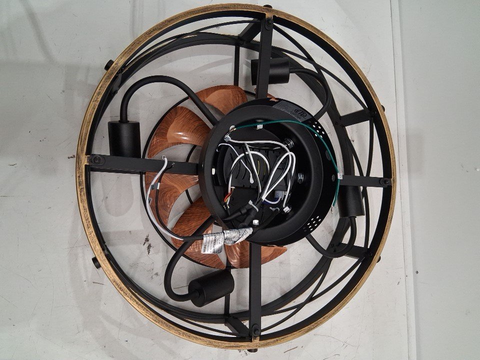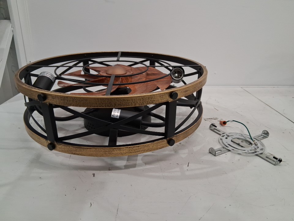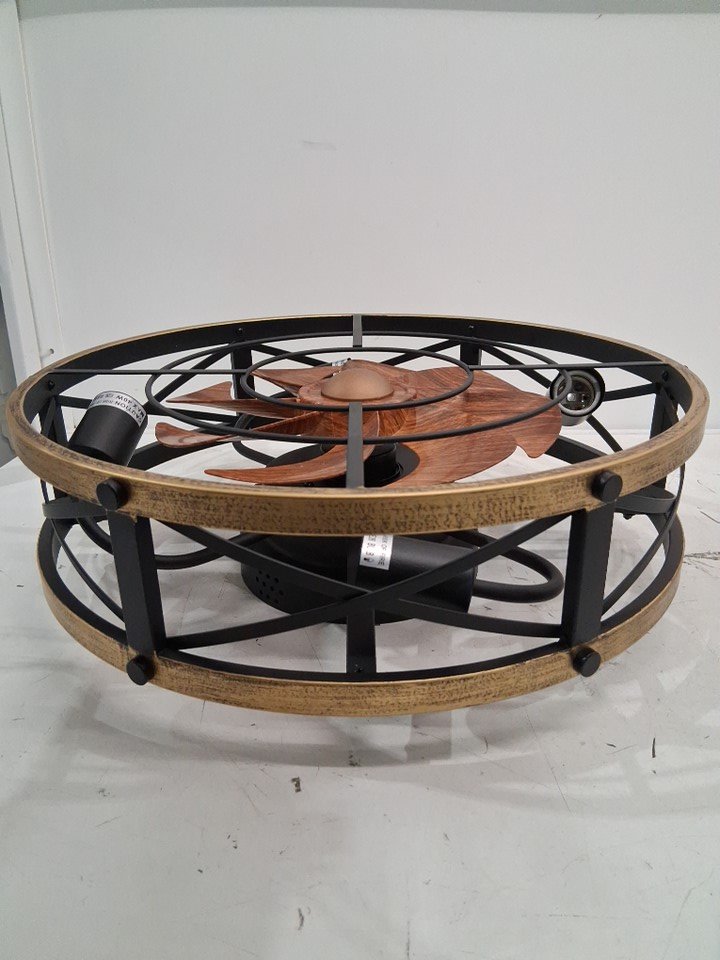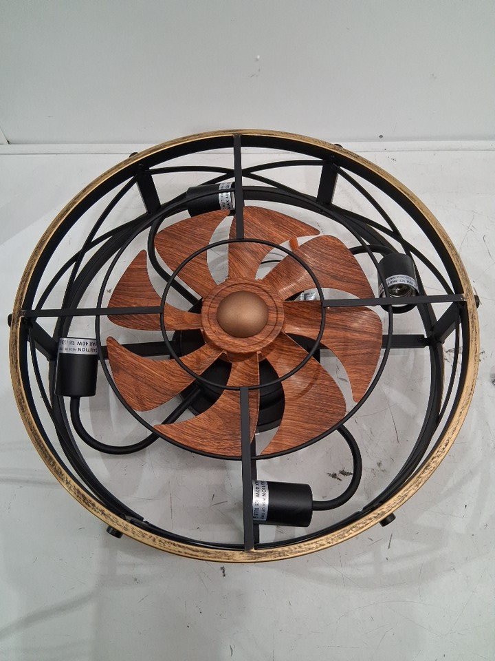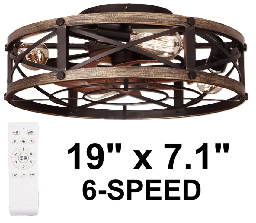 SHLUCE Farmhouse Flush Mount Caged 6-Speed Ceiling Fan With Lights - 19" x 7.1" - Black/Brown (Model: FLA003A)