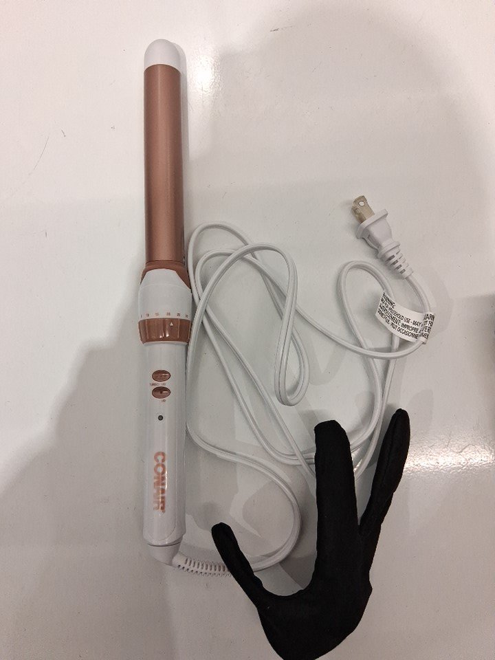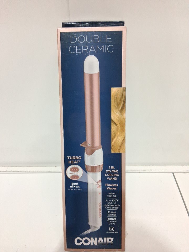 CONAIR DOUBLE TURBO HEAT CERAMIC FLAWLESS WAVES CURLING WAND HAIR STYLER - 1" - WHITE/ROSE GOLD (MODEL: CD705GNC)