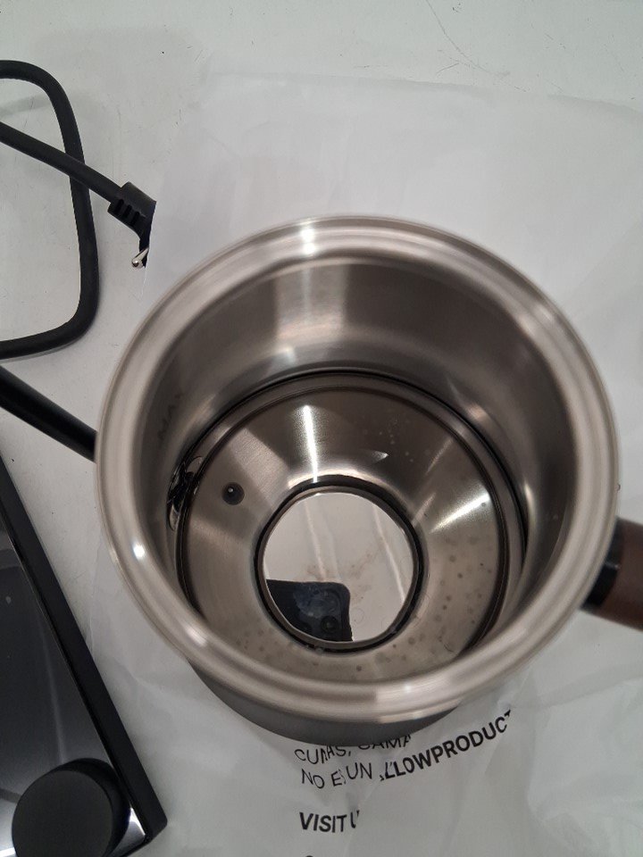 Bottom of kettle has water spots, and base has a scuff mark on it