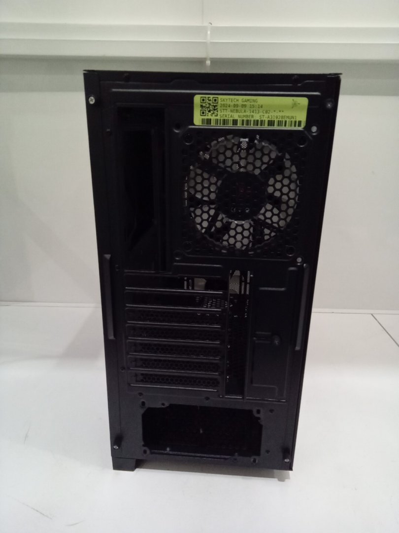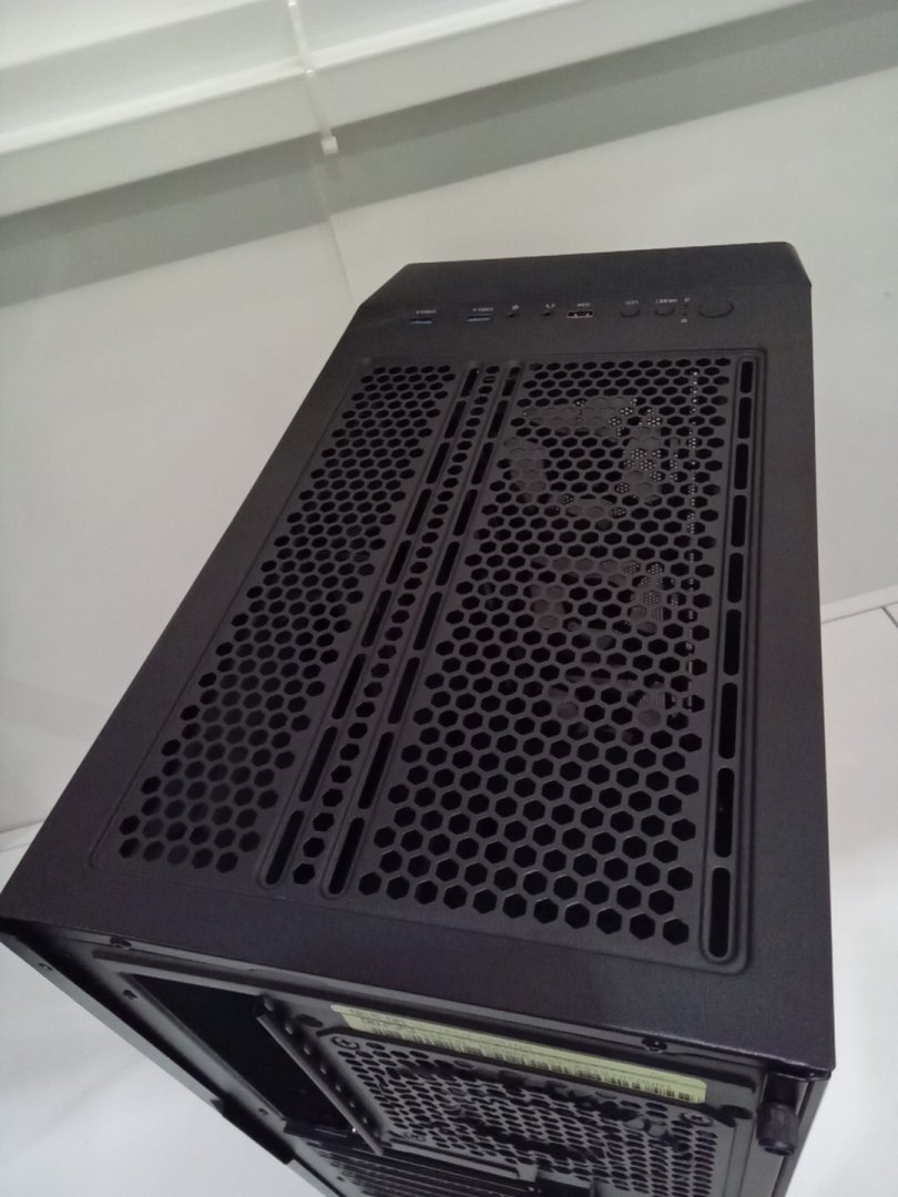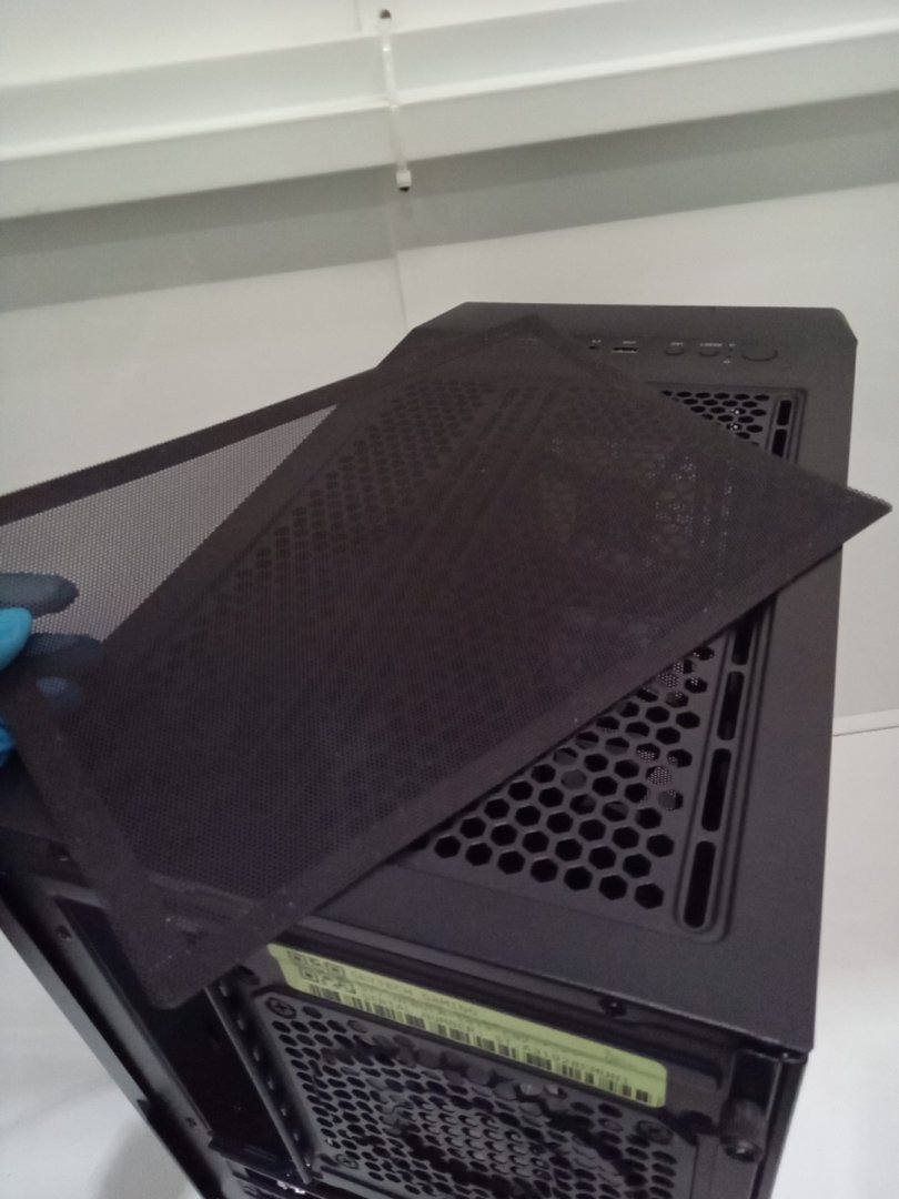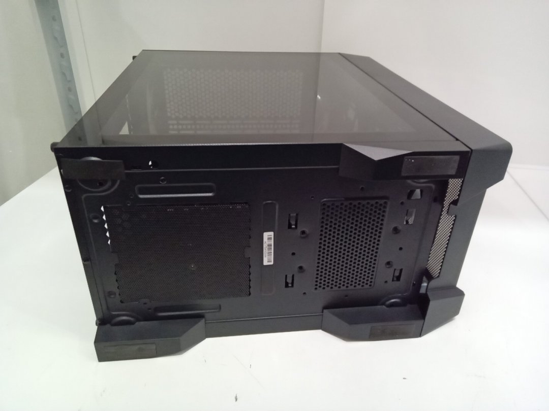 Set is missing one of the back legs and will require something else to prop up case to stand flush. Traces of dust on the top vent from prior use.