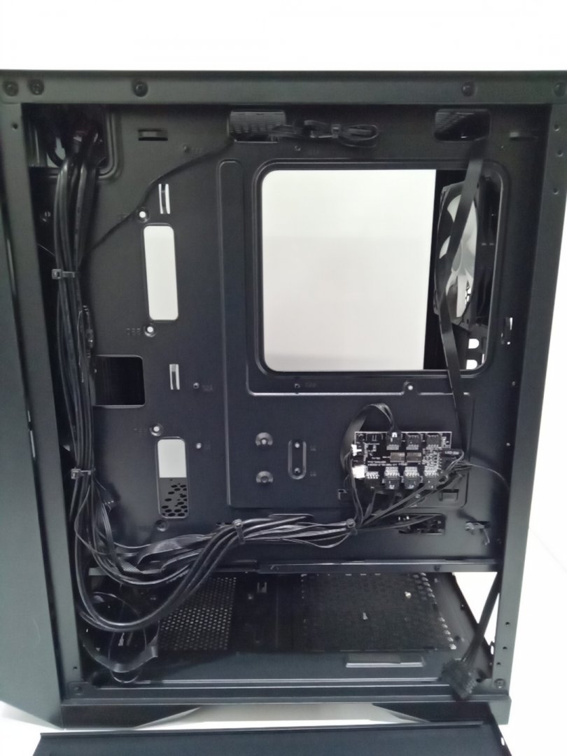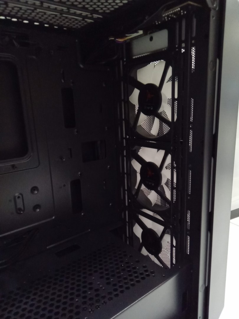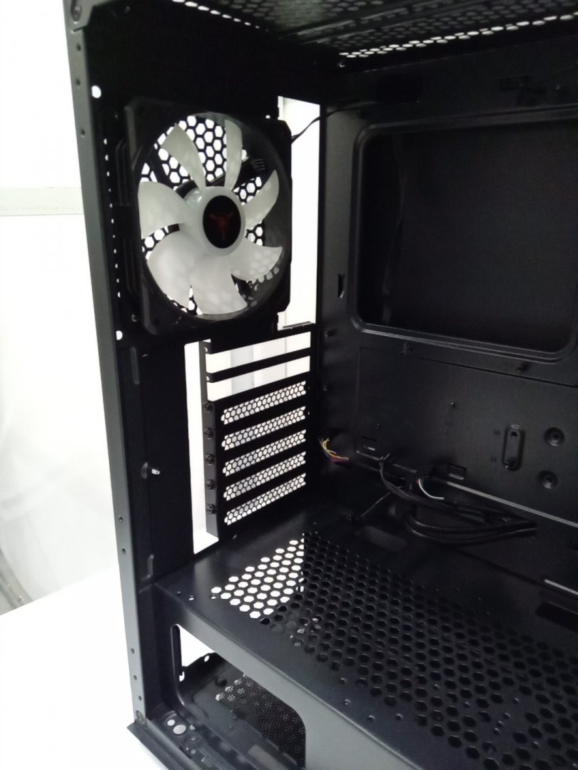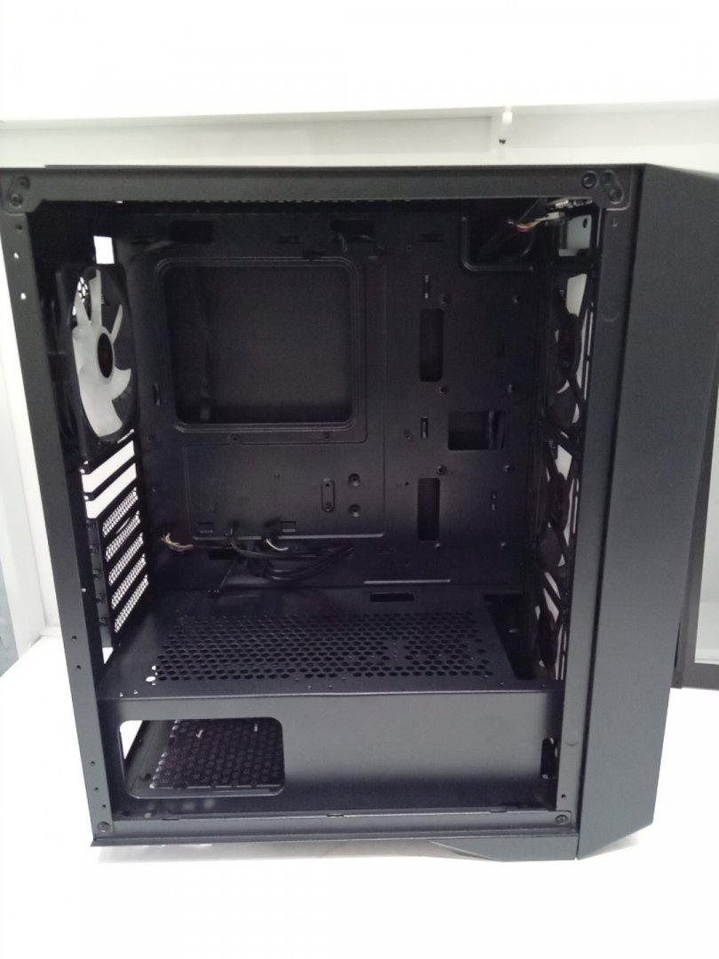 Set is missing one of the back legs and will require something else to prop up case to stand flush. Traces of dust on the top vent from prior use.