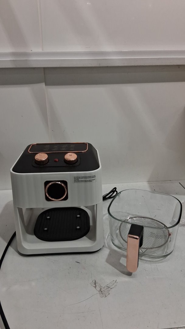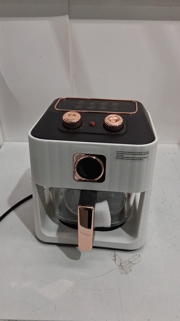 glass bowl intelligent temperature control air fryer -4.5l - 100w - 120v - white/rose gold (model: qc-001)