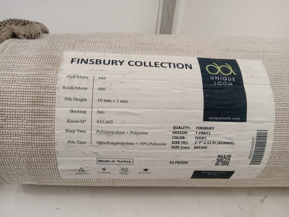 Unique Loom Kate Finsbury Runner Rug with Soft Low-Pile Durable Polypropylene Material, Stain-Resistant & Easy to Clean - Ivory - 2'7" x 12' (Model: T-FBRY2)