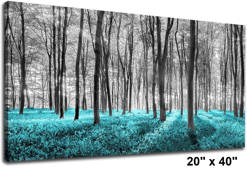 forrest themed Wall Art Canvas Print with tree Landscape - 40" x 20" - blue