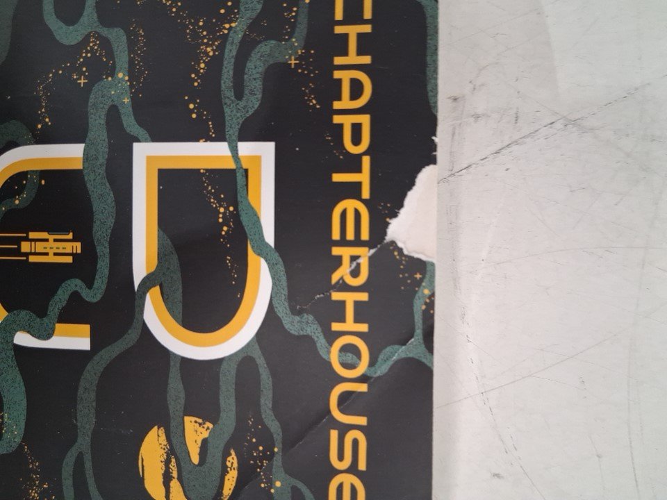 item is slightly ripped on the middle top cover shown in pictures from previous use