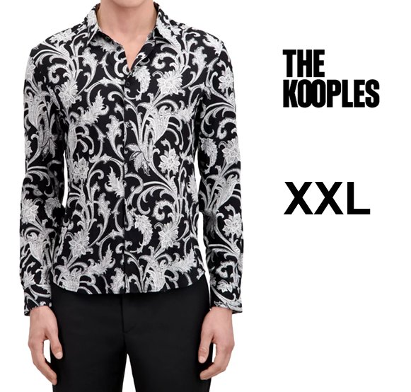MENS The Kooples Printed Long Sleeve Button Front Shirt - XXL - BLACK/WHITE (STYLE: 3615872310446)