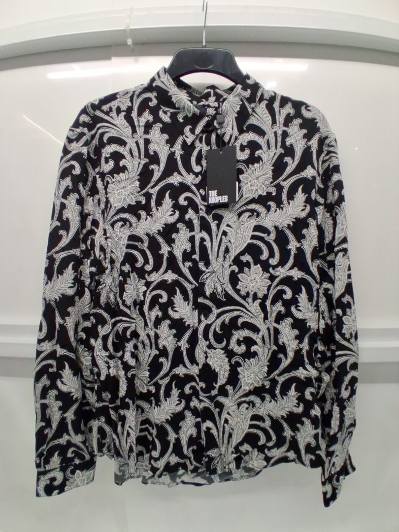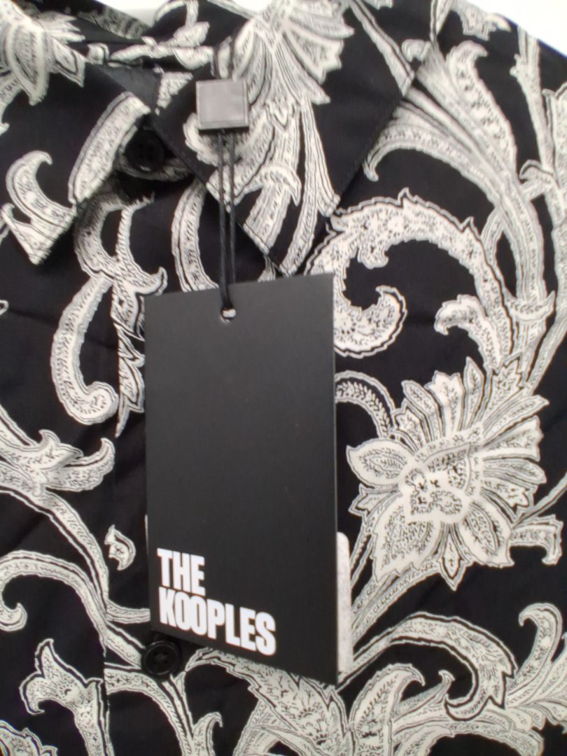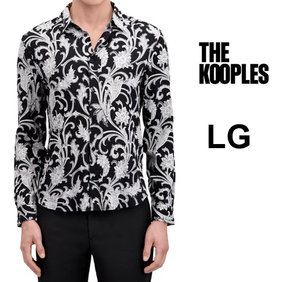 MENS The Kooples Printed Long Sleeve Button Front Shirt - LARGE - BLACK/WHITE (STYLE: 3615872310446)