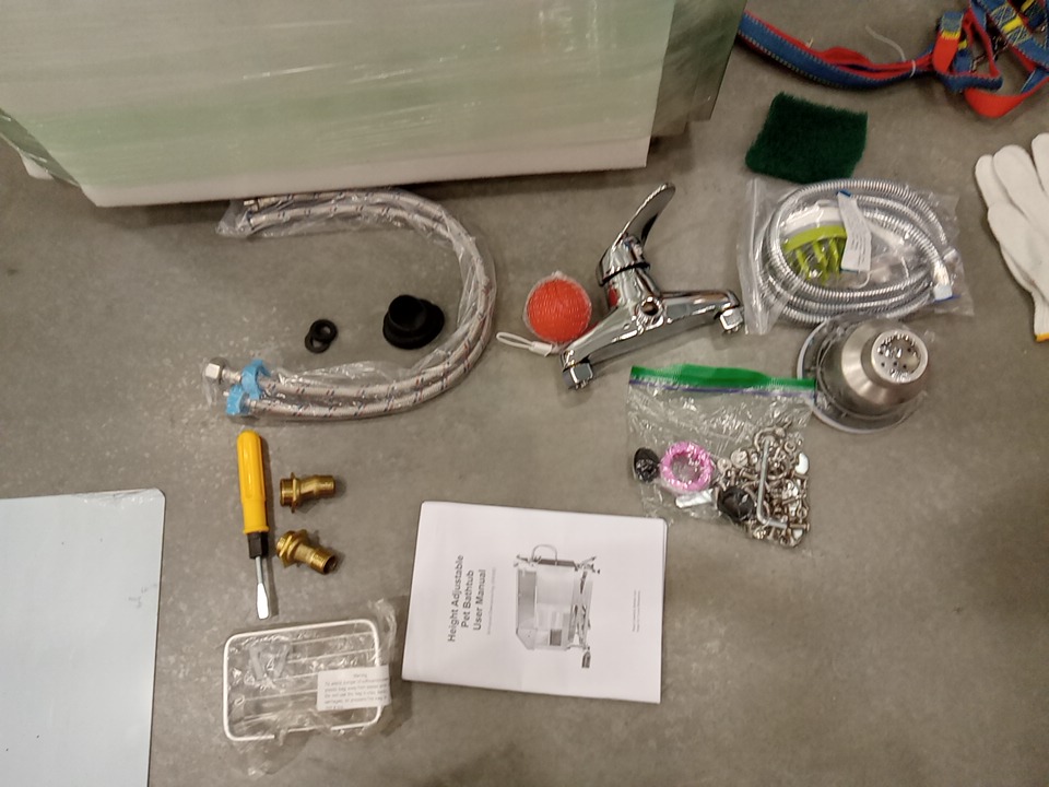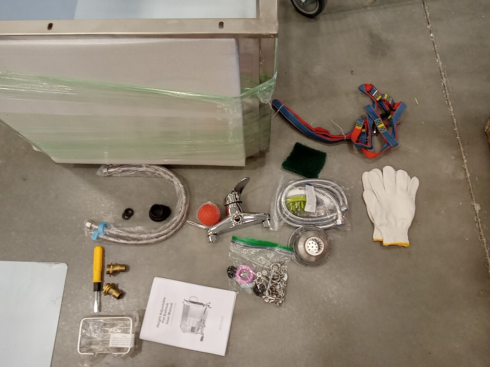 their are some minor scratch / scuff marks on the stainless steel of this item, this item is missing the top cover part that is seen in the main photo, however the tub itself and the electric height adjustable table is included as well and has been tested and is confirmed to be working. accessories are also included however their may be some issue with the usage of these accessories as the top cover part that is missing and these accessories are meant to be attached to the top cover as seen in the main photo . see photos below to view all parts included in this listing.