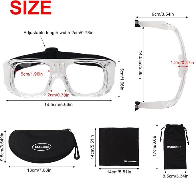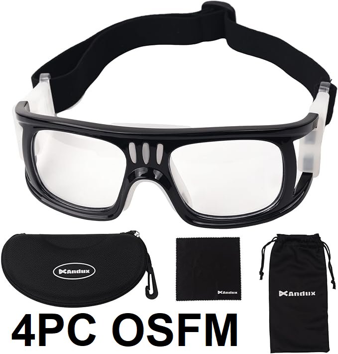 andux sport safety goggles with cleaning cloth, fabric bag, and carrying case - OSFM - black/clear