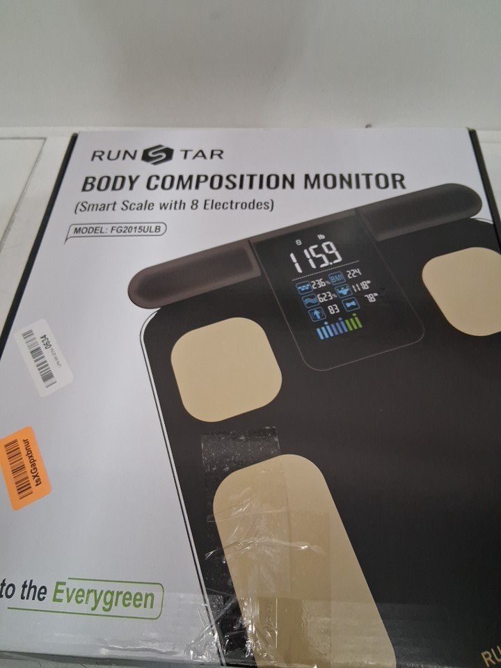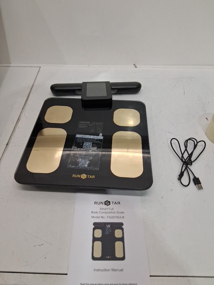 RunStar Scale for Body Weight and Fat Percentage, 8 Electrodes High Precision for BMI 28 Body Composition Measurement - app compatible - black/gold - (model:fg2015ulb)